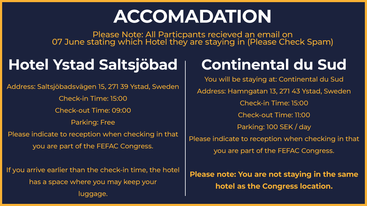 - Please indicate to reception when checking in that you are part of the FEFAC Congress.